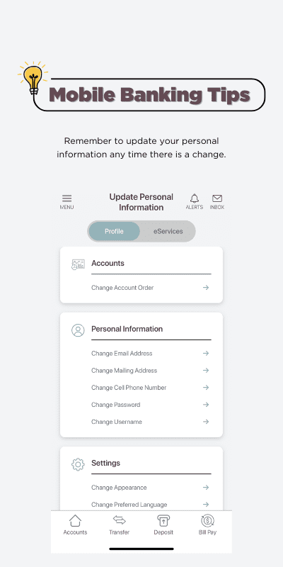 Through our mobile banking app, you can utilize many of the features available in our home banking. Just think how convenient it will be to view your account balance before making a purchase! Begin using mobile banking today and securely manage your finances on the go.