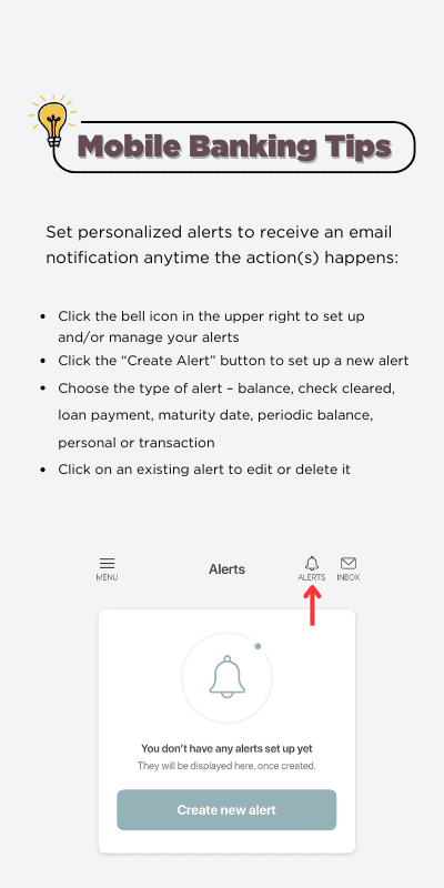 - Set up and view account alerts